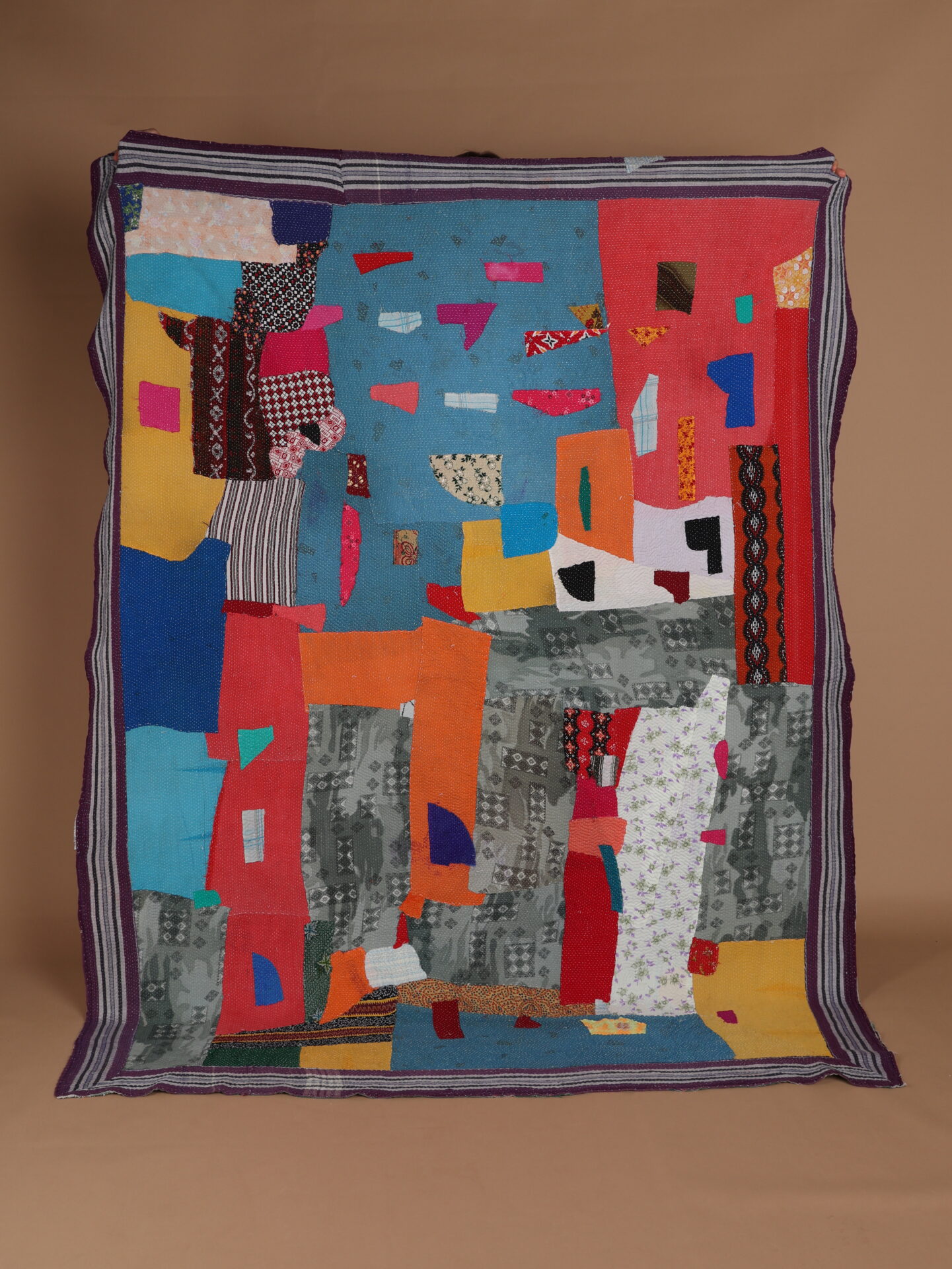 This beautiful piece of art has been made by hand using old patchworks of Indian cotton saree materials. A generous layer of fabrics are quilted together to give the Kantha blanket its warming weight and durability. You will find as the fabrics on the outer layer start to deteriorate over years of use, the beautiful shades and colours of the fabrics underneath will hint through making it look even more astonishing as it ages.