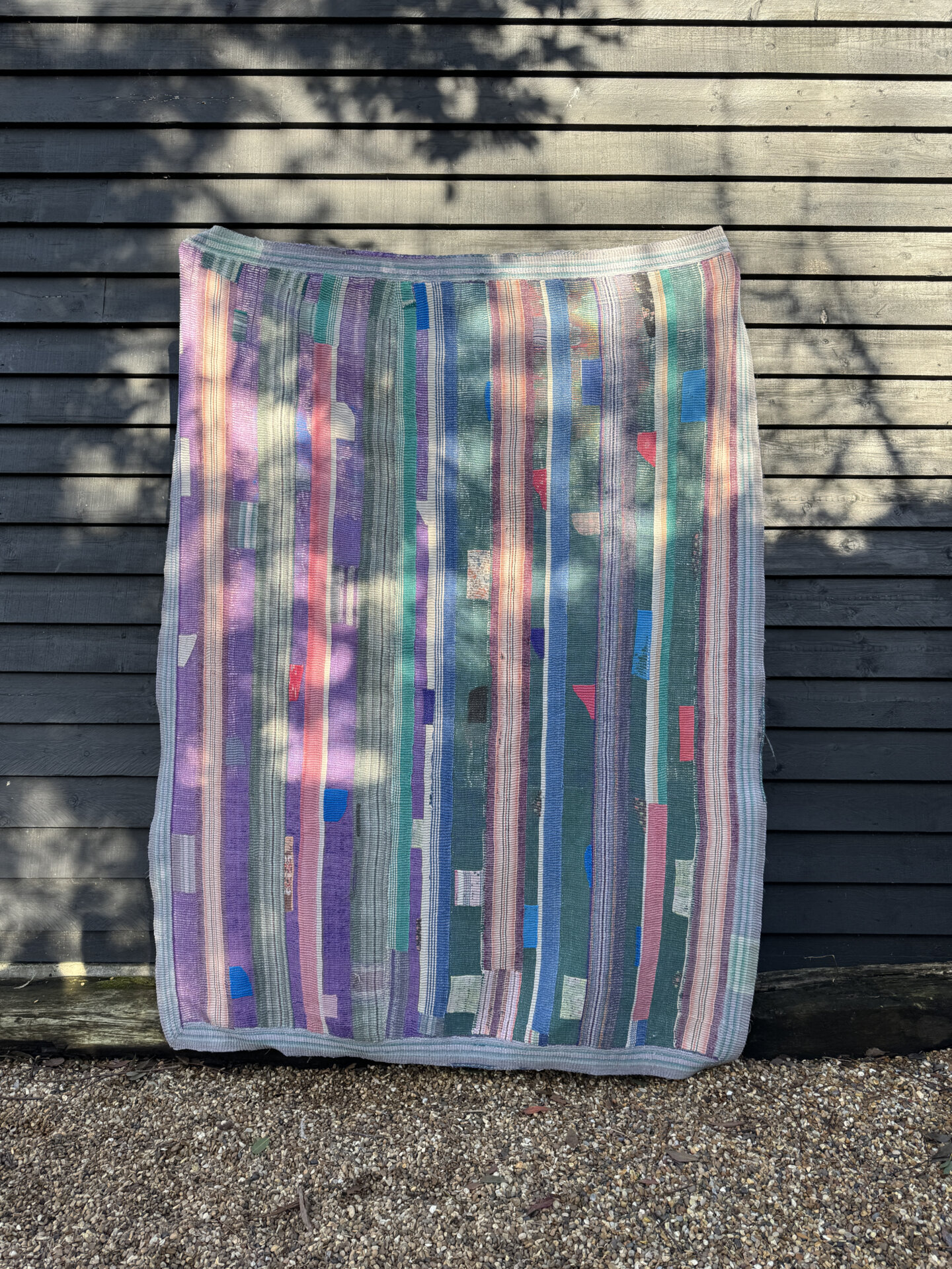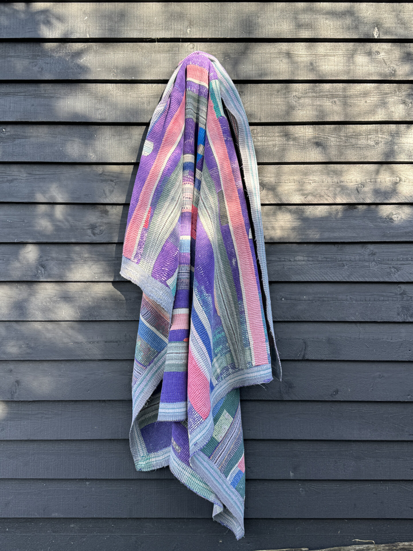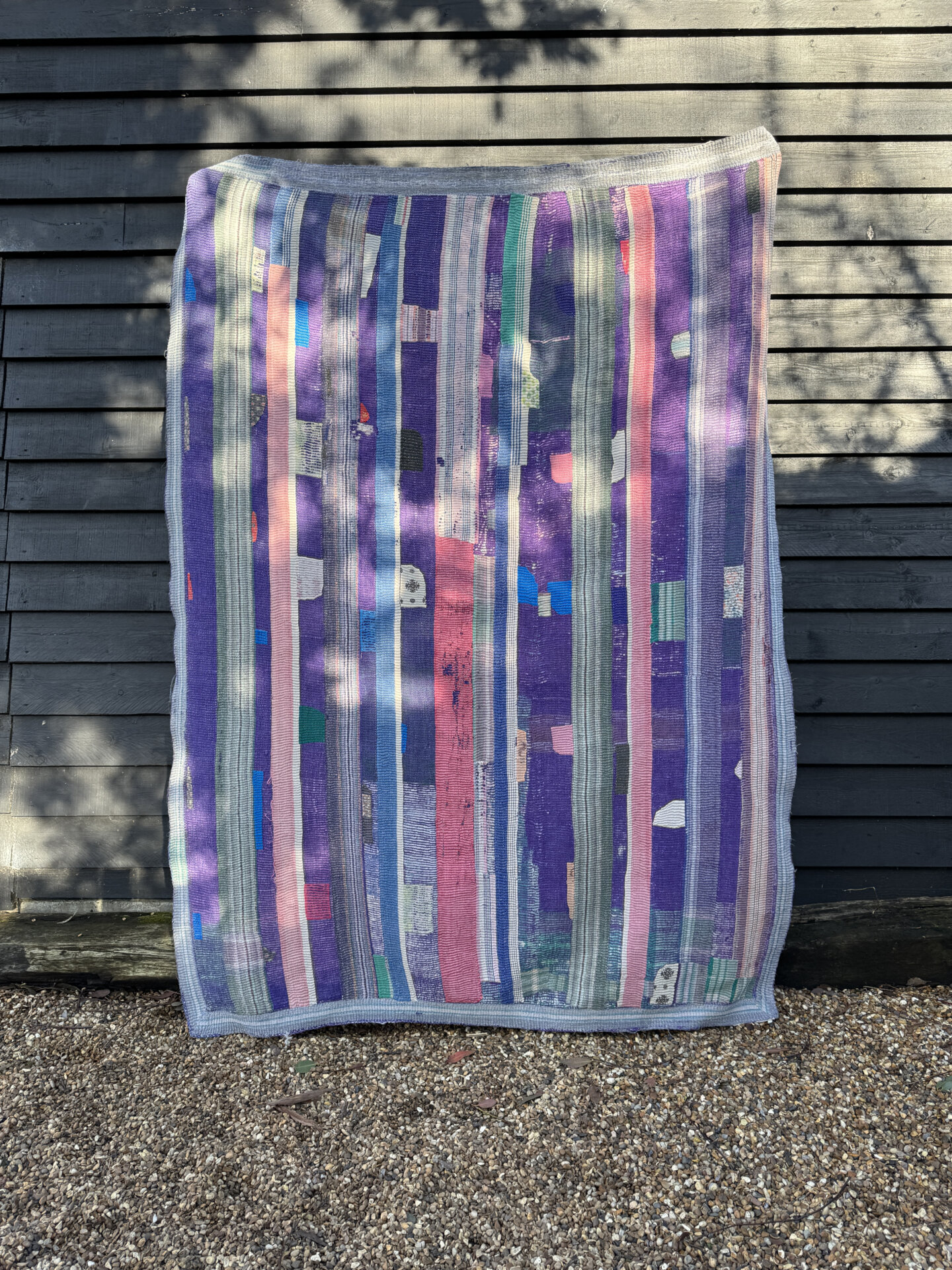 This beautiful piece of art has been made by hand using old patchworks of Indian cotton saree materials. A generous layer of fabrics are quilted together to give the Kantha blanket its warming weight and durability. You will find as the fabrics on the outer layer start to deteriorate over years of use, the beautiful shades and colours of the fabrics underneath will hint through making it look even more astonishing as it ages.